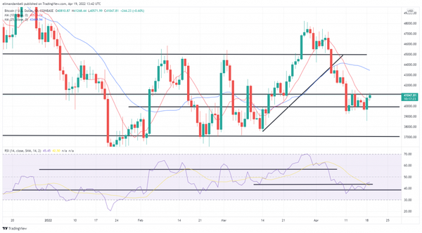 After several days of bearish pressure, cryptocurrency prices finally recovered on Tuesday, with BTC climbing back above $41,000. The world's largest cryptocurrency surged fivefold in today's session, hitting an intraday high of $41,146.89. The price surge comes after Monday's low of $39,123.16, the lowest BTC/USD traded since March 15.